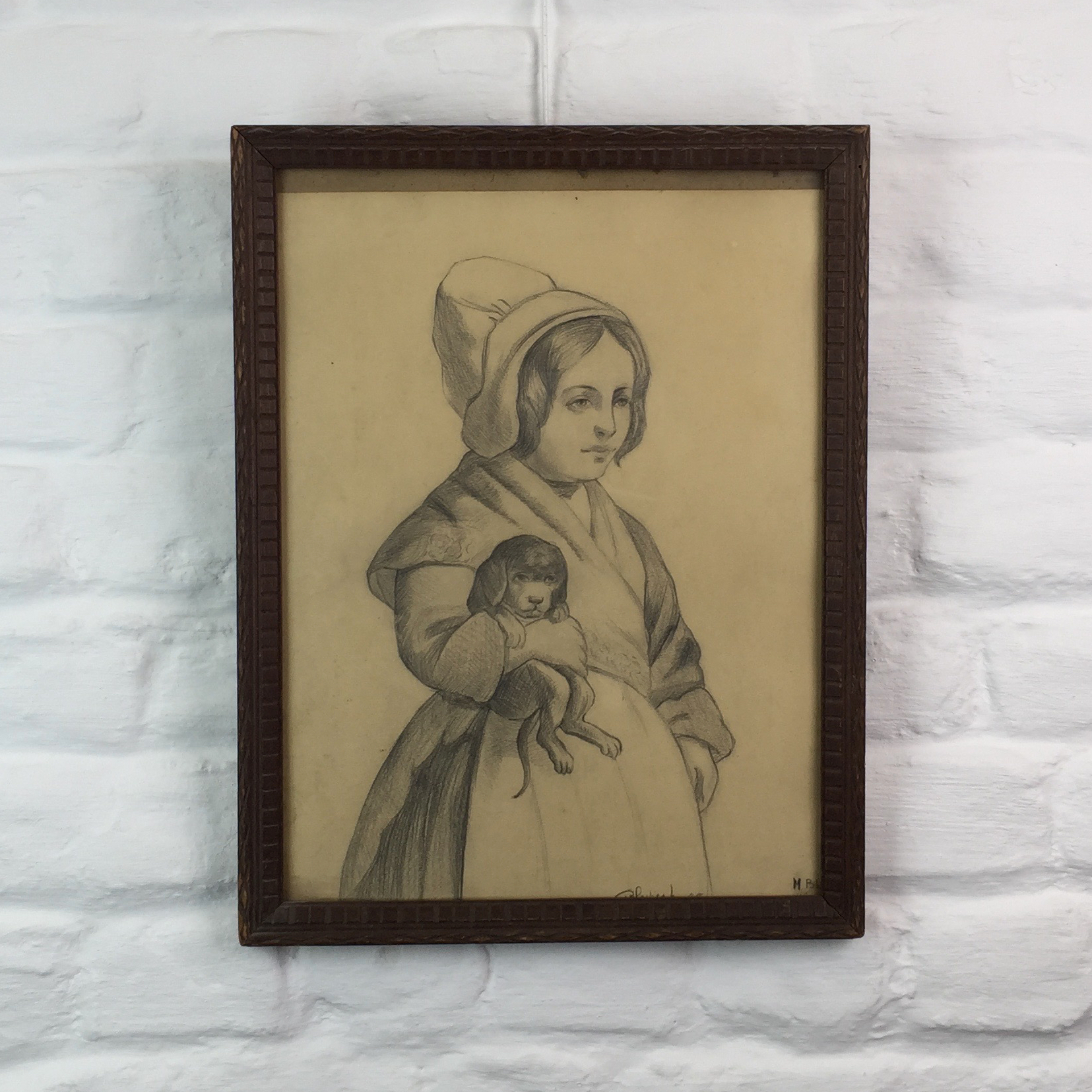 Caroline and her puppy black beige old paper medium Dimensions Height: 39 cm Width: 30 cm Position Location: leLorrain Floor: 2 Hallway & Shelf: B07 Shelf Position: 5A Product Details Stock: 1