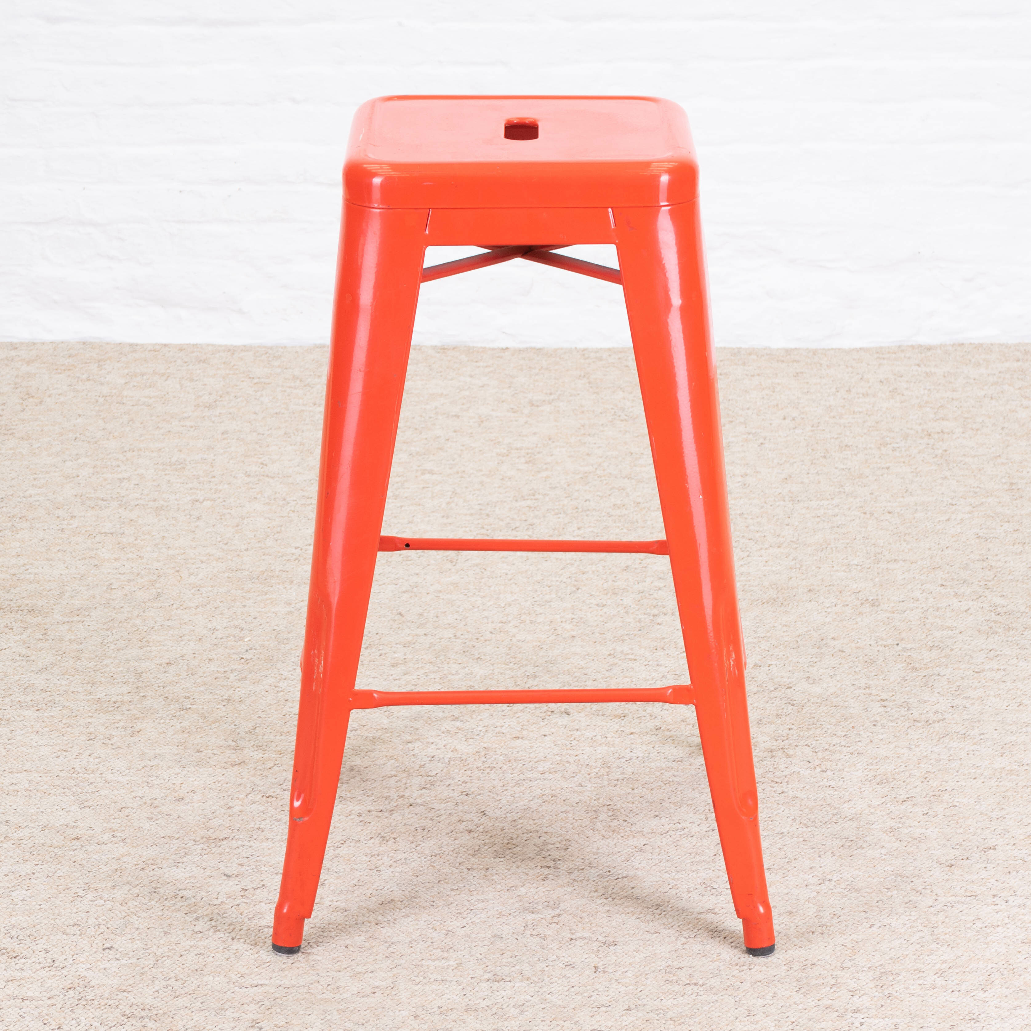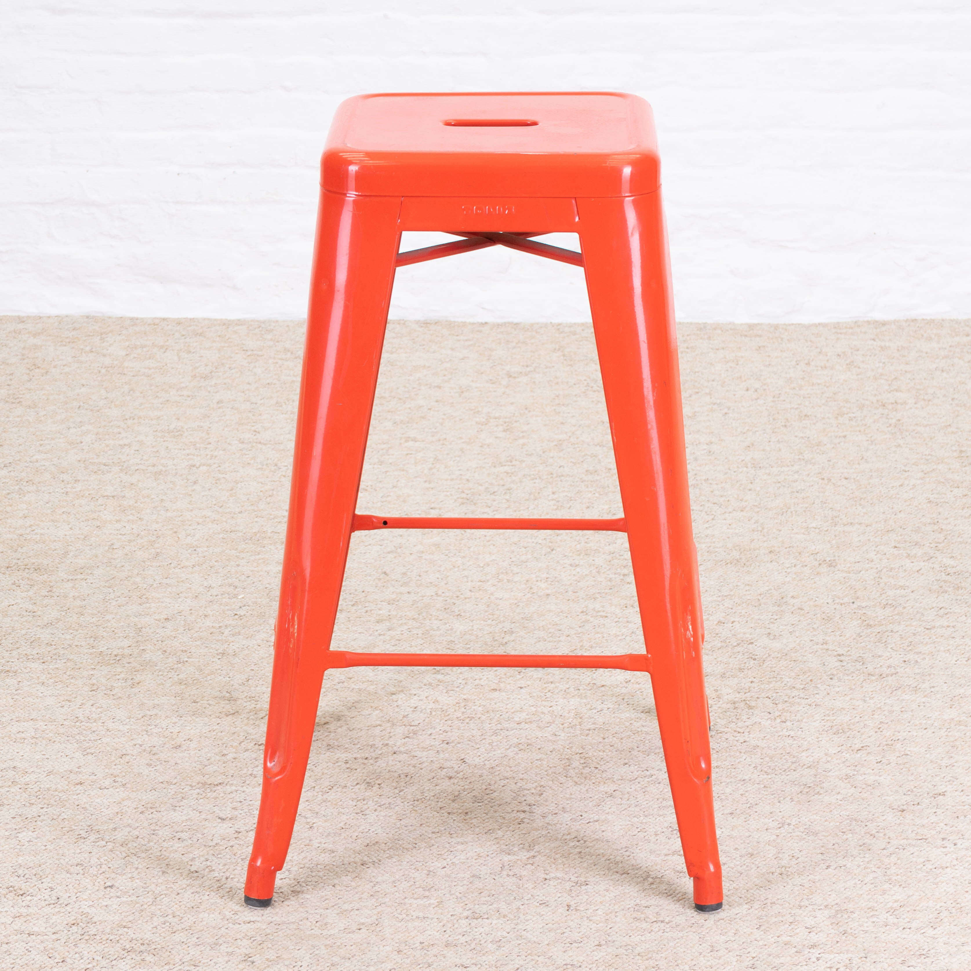 Red Tolix stool Dimensions Height: 72 cm Width: 45 cm Depth: 45 cm Position Location: independence Floor: 1 Hallway & Shelf: D9 Shelf Position: 2B Product Details Stock: 1